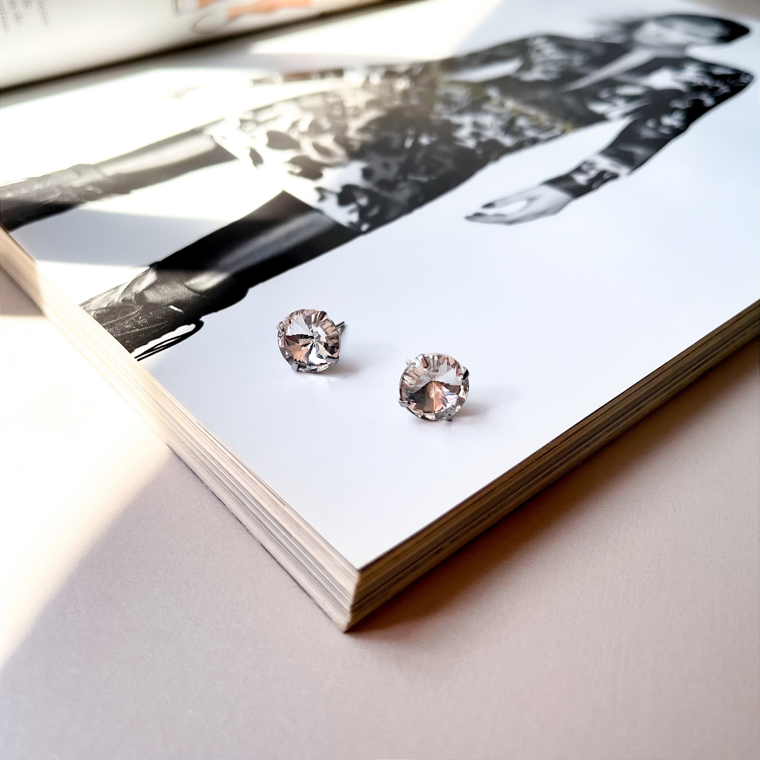 Brinco Ponto de Luz com Pedra de Strass em Aço Inox CRISTAL
